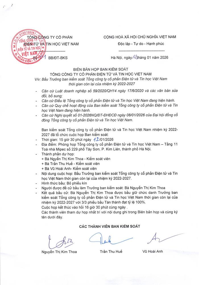 Nghị quyết HĐQT vê việc chuyển nhượng vốn của Viettronics tại Công ty cổ phần máy tính và truyền thông Việt Nam