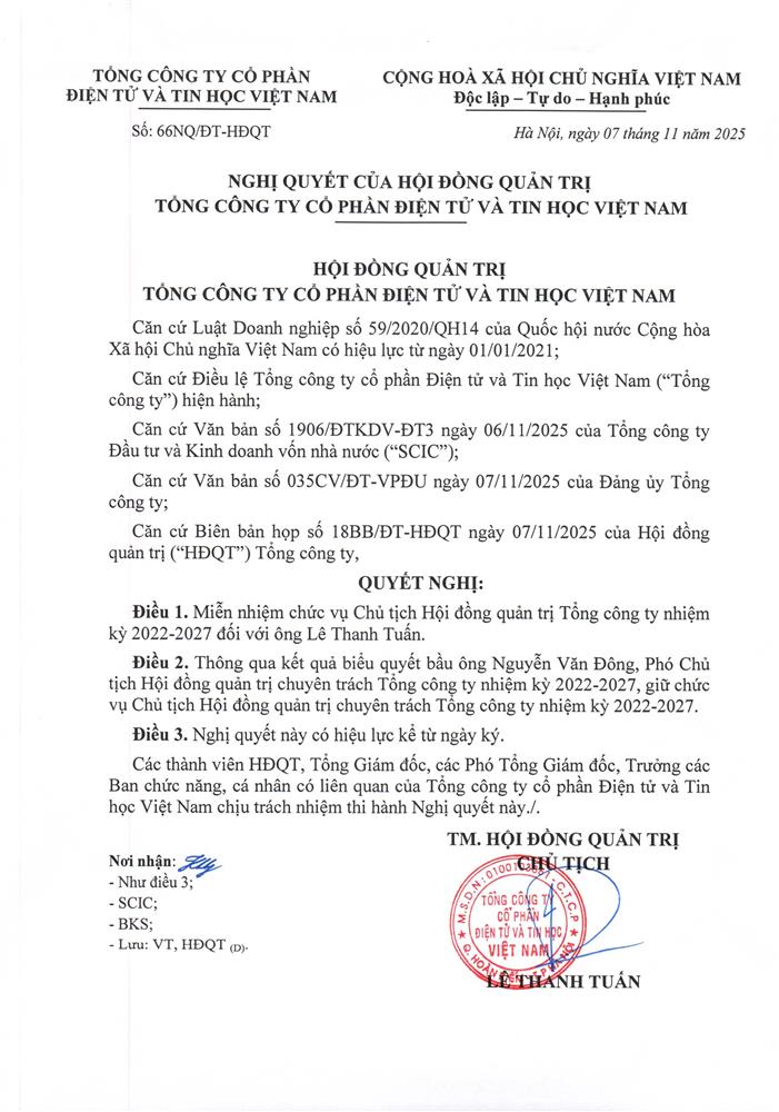 • Bổ nhiệm Ông Nguyễn Văn Đông giữ chức vụ Chủ tịch HĐQT Viettronics nhiệm kỳ 2022-2027