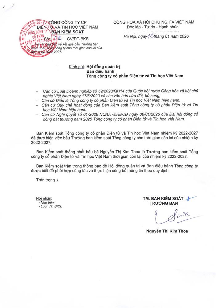 Nghị quyết HĐQT vê việc chuyển nhượng vốn của Viettronics tại Công ty cổ phần máy tính và truyền thông Việt Nam